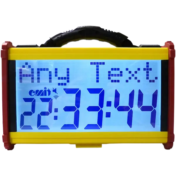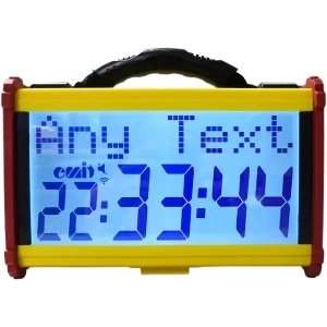 Clipsez l’horloge sur le trépied fourni, ajustez les pieds et allumez-la. Le panneau de contrôle latéral permet une configuration intuitive, sans équipement supplémentaire.