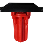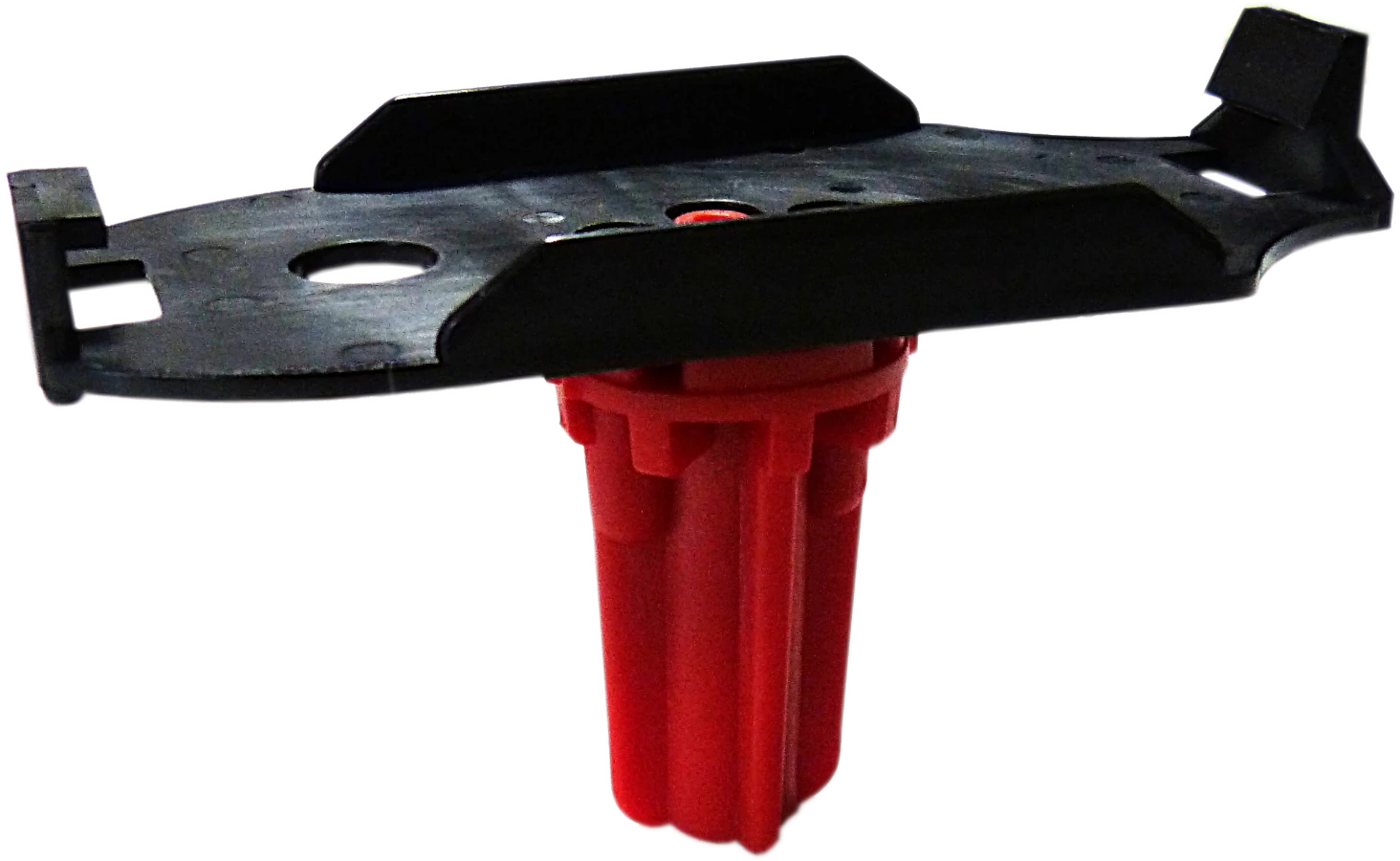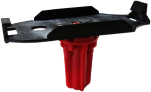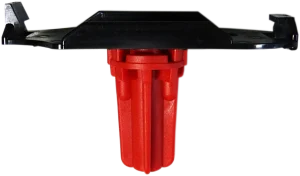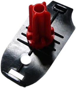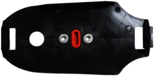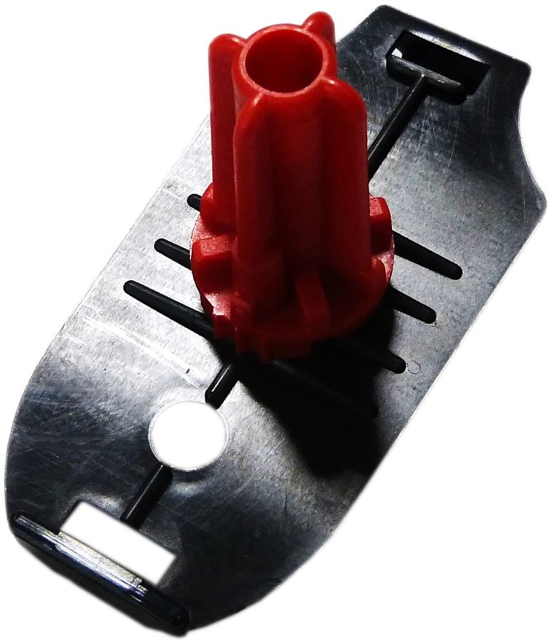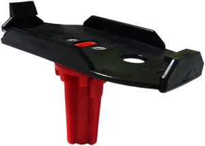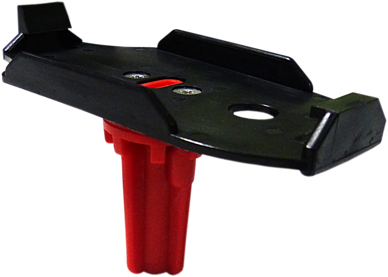 La station de contrôle s’enclenche directement et solidement dans la plaque de maintien, elle-même fixée sur la base rouge pour une sécurité optimale.
